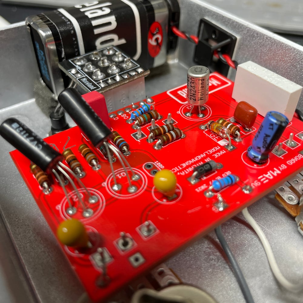 This version is discontinued until further notice. A new version is in pre-production now, which will be functionally and sonically the same, using the same transistor set, but with smd passive components and available in 125b sized enclosures. Stay tuned!